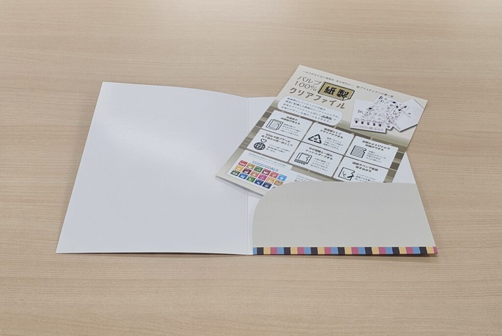 ポケットがついた二つ折りの紙製ファイルのこと。