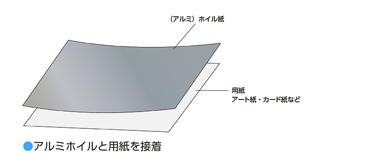ベースとなるコートボール紙・コートカード紙などに、直接アルミ箔を貼り合わせた紙