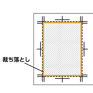 印刷面の端まで絵柄が入る場合、ここまでデータが入る。断裁時、端まで絵柄が入るようにする大切な部分。